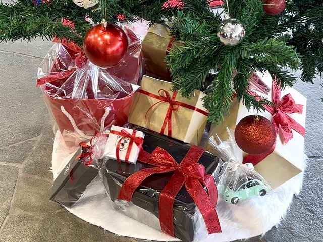 フィアットとアバルトのグッズを可愛くラッピングして飾っております🎁